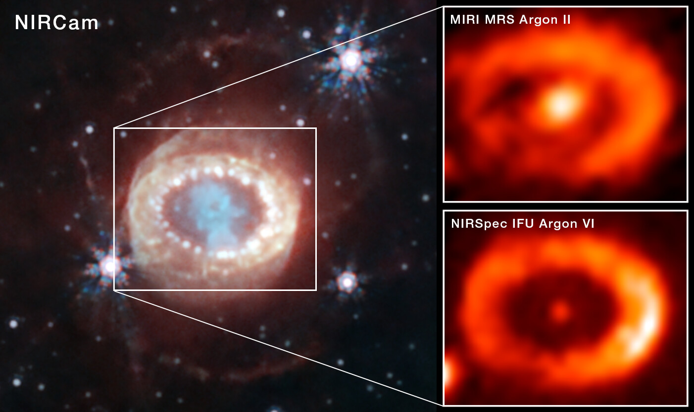 In a new study, published in the journal Science, researchers used MIRI and NIRSpec, on the James Webb Space Telescope (JWST), to observe the supernova at infrared wavelengths. They found evidence of narrow emission lines from ionised argon and sulphur atoms located at the centre of a nebula around SN 1987A. The team showed that the emission line strengths observed by JWST must be triggered by radiation from the hot neutron star or from a pulsar wind nebula around the neutron star.